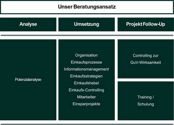 Wir wollen Sie bei der Optimierung Ihrer Situation und vor allem Ihres Unternehmensergebnisses unterstützen. Unser Beratungsansatz ist daher zur Absicherung der Umsetzungsergebnisse 3-Stufig gestaltet: